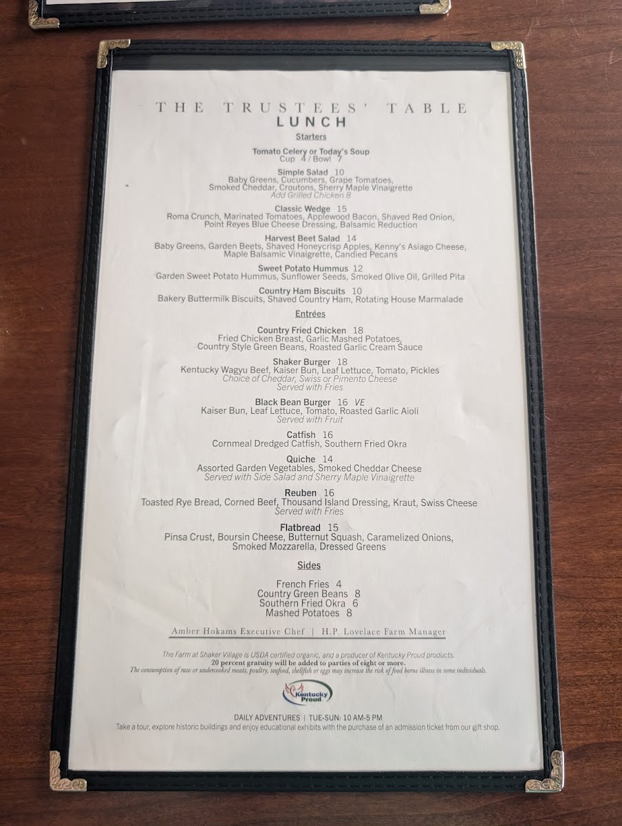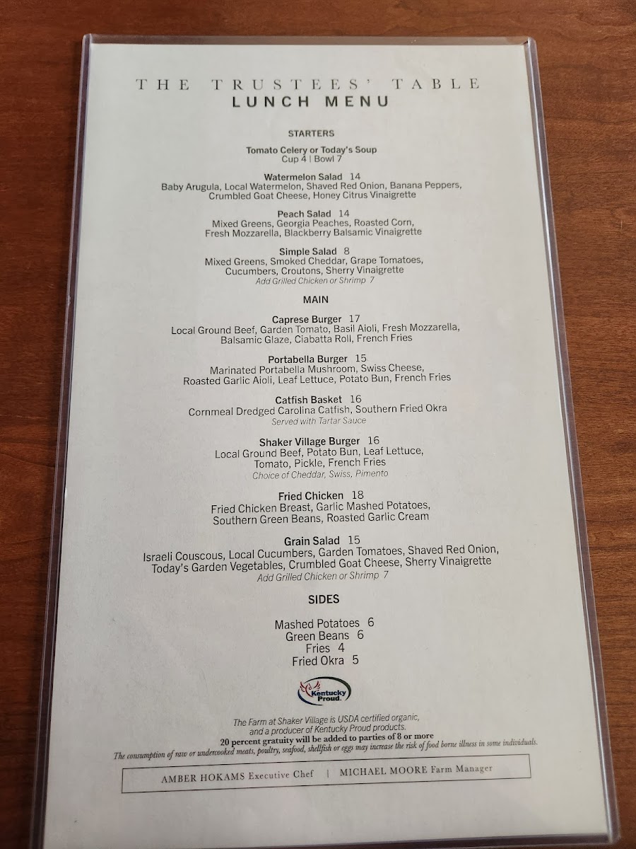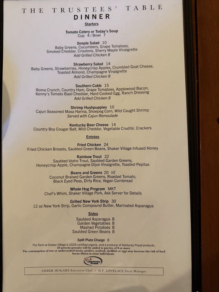 At The Trustees' Table, you'll find a menu that celebrates the rich flavors of Kentucky with a perfect blend of traditional dishes and unique twists. Located at 3501 Lexington Rd in Harrodsburg, this cozy restaurant offers a welcoming atmosphere for all who are looking to enjoy a delicious meal. Whether you're in the mood for a hearty steak, a fresh salad, or something in between, the selection at The Trustees' Table Menu is sure to impress. Their commitment to using locally sourced ingredients shines through in every bite, ensuring freshness and quality. Each dish is crafted with care, making it the perfect spot for everything from a casual meal to a special celebration.