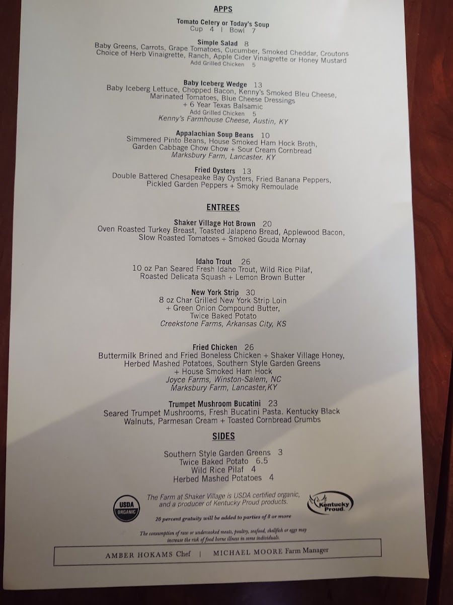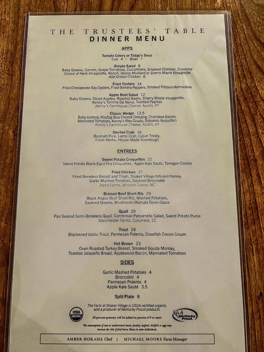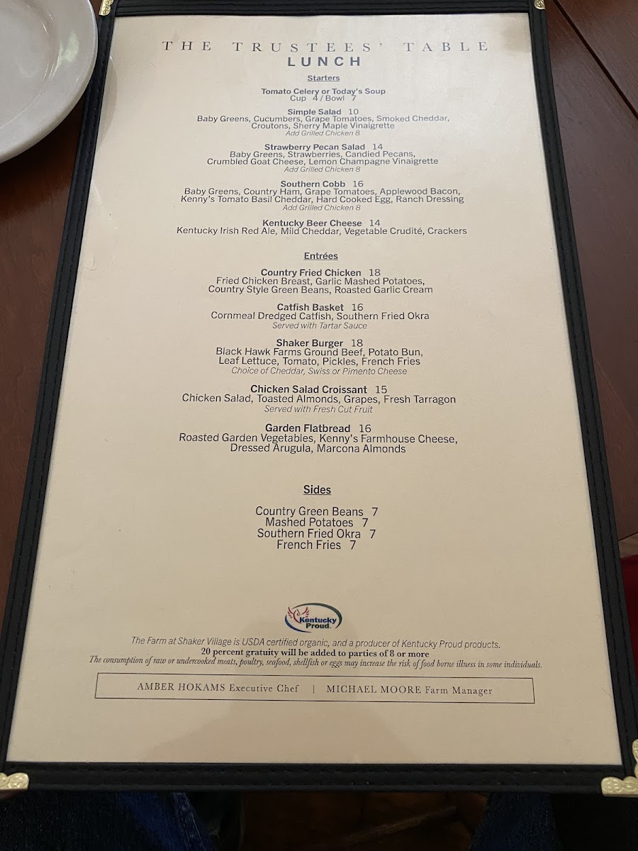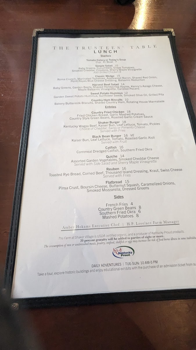 At The Trustees' Table, you'll find a menu that celebrates the rich flavors of Kentucky with a perfect blend of traditional dishes and unique twists. Located at 3501 Lexington Rd in Harrodsburg, this cozy restaurant offers a welcoming atmosphere for all who are looking to enjoy a delicious meal. Whether you're in the mood for a hearty steak, a fresh salad, or something in between, the selection at The Trustees' Table Menu is sure to impress. Their commitment to using locally sourced ingredients shines through in every bite, ensuring freshness and quality. Each dish is crafted with care, making it the perfect spot for everything from a casual meal to a special celebration.